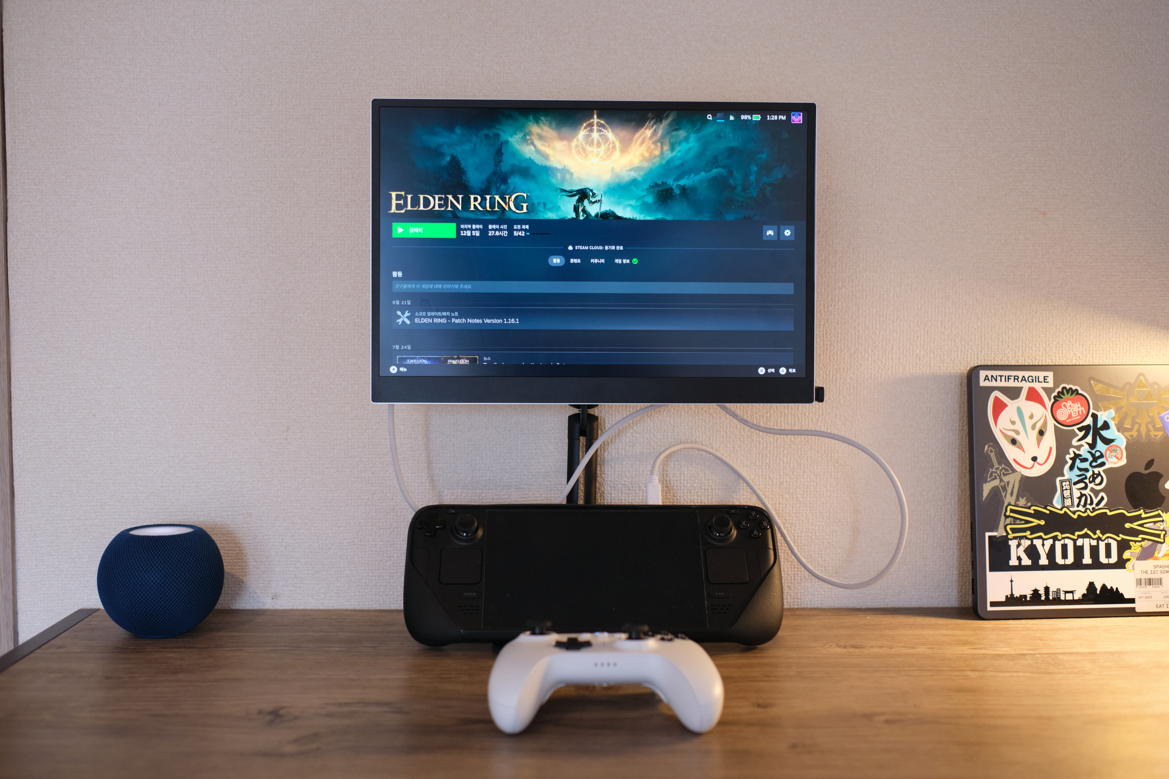 마지막은 애플 홈팟 미니입니다. 한국에는 아직 안 파는 걸로 아는데... 이거 교토에 있을 때 중고로 6만원? 인가에 사 왔습니다. 원래 중고품이라 싼 데다가 그 중고 판매 업체가 면세까지 되는 곳이었어서 많이 싸게 샀네요. 이거 사실 꼭 필요하냐고 물으면 애매한데요. 개인적으로는 만족도가 높습니다. 대부분의 작업에서 싱글 모니터를 좋아하는 편인데, 그러면 맥북 리드를 닫고 사용하게 되기 때문에 소리가 먹먹하게 들리곤 합니다. 이 제품 하나를 세팅하면 애플 기기 전부가 이 스피커를 사용할 수 있게 되니까, 여러 모로 좋습니다.